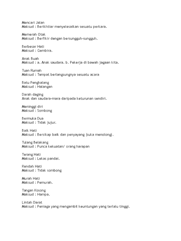 Ulang kaji simpulan bahasa bermula dengan huruf B Learn with flashcards games and more for free. Lelaki yang telah di akui sebagai abang tetapi tidak mempunyai pertalian darah dengan orang yang mengakuinya. Simpulan bahasa ialah ungkapan yang biasanya terdiri daripada dua atau tiga perkataan dan mempunyai makna yang berlainan sama sekali daripada makna asal.