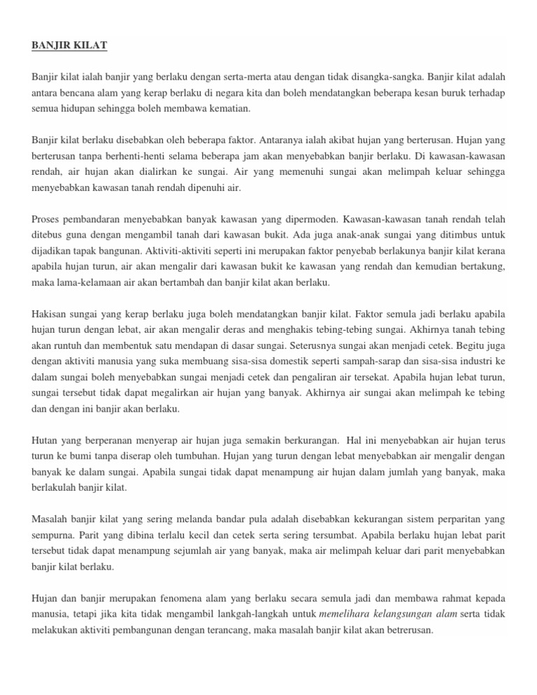 Lain pula di Karak yang mana paling ketara air hujan dan air banjir yang mengalir membawa. Berikut ini adalah beberapa faktor terjadinya banjir yang terjadi akibat keadaan alam dan manusia. Web Menulis Untuk Berkongsi dan Elakkan Diri Sendiri Lupa Carian.
